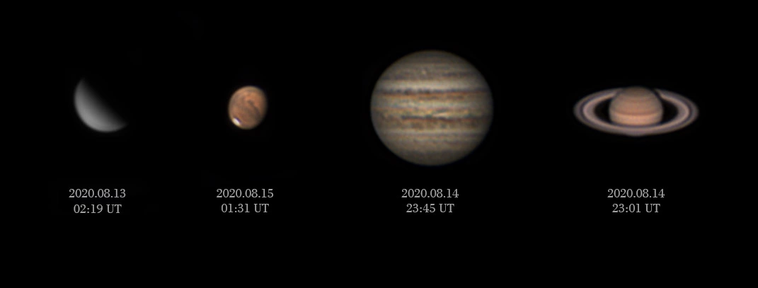 | Exp. idő: | Vénusz-Mars-Szaturnusz 5 perc, Jupiter 10x1 perc videóból derotá |