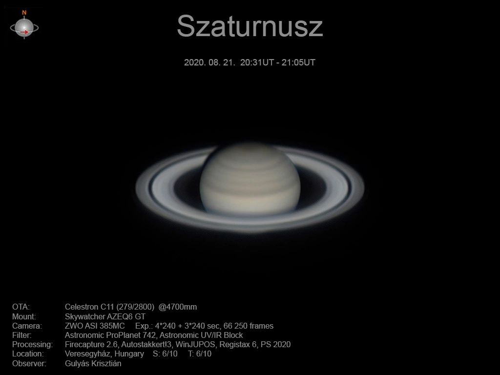 | Kamera: | ZWO ASI 385 MC színes kamera |