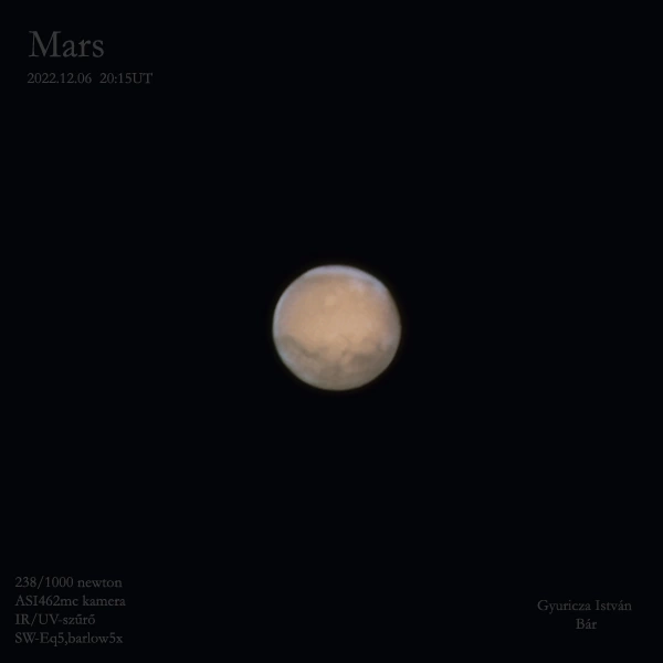 | Kamera: | ZWO ASI 462MC színes kamera |