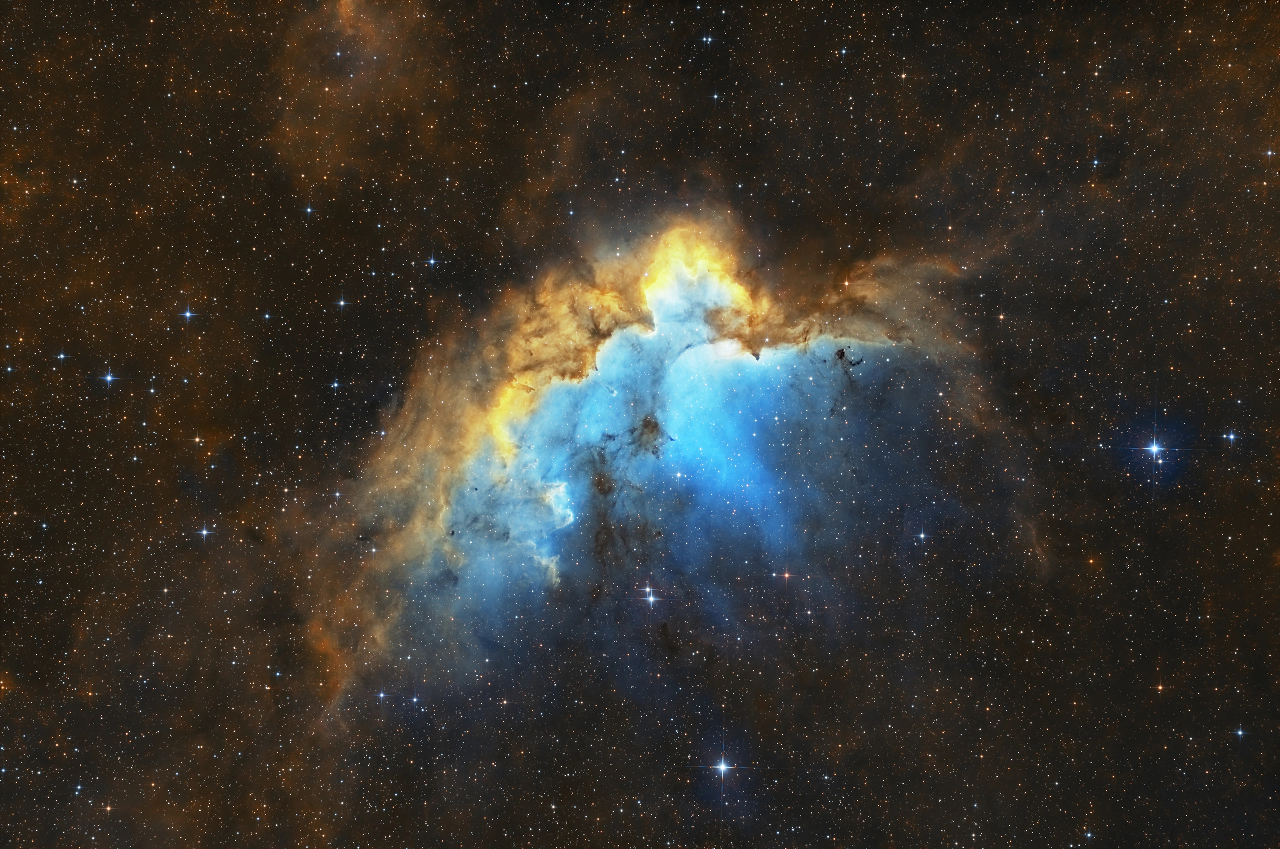 | Exp. idő: | 10,75 óra Ha-OIII, és 5,5 óra SII-OIII |