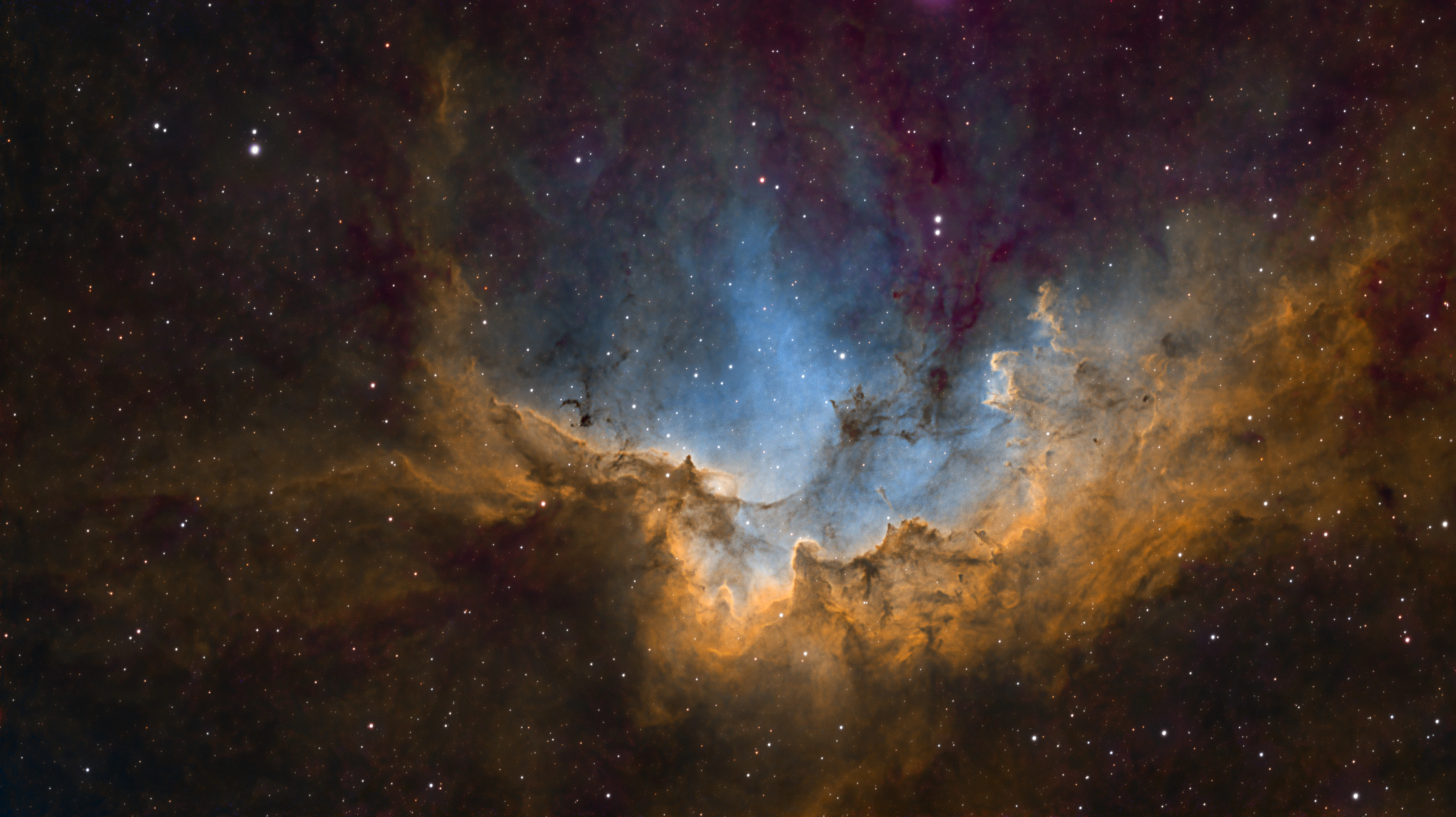 | Exp. idő: | HA 126x3 perc, SII 123x3 perc, OIII 100x3 perc; R 33x15 másodper |