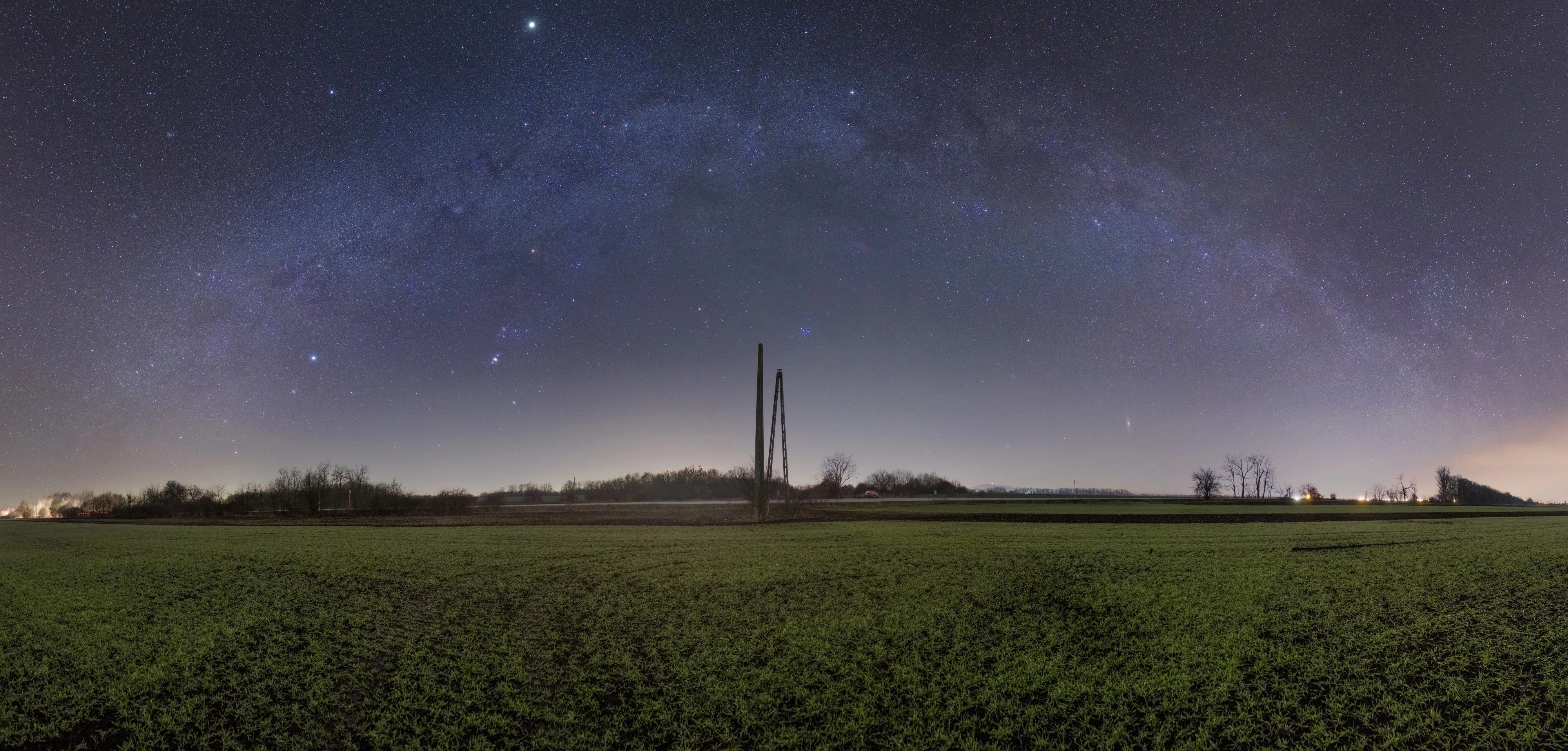 12×180 s, F/2, ISO-1600 az égre 6×180 s, F/2, ISO-1600 a tájra